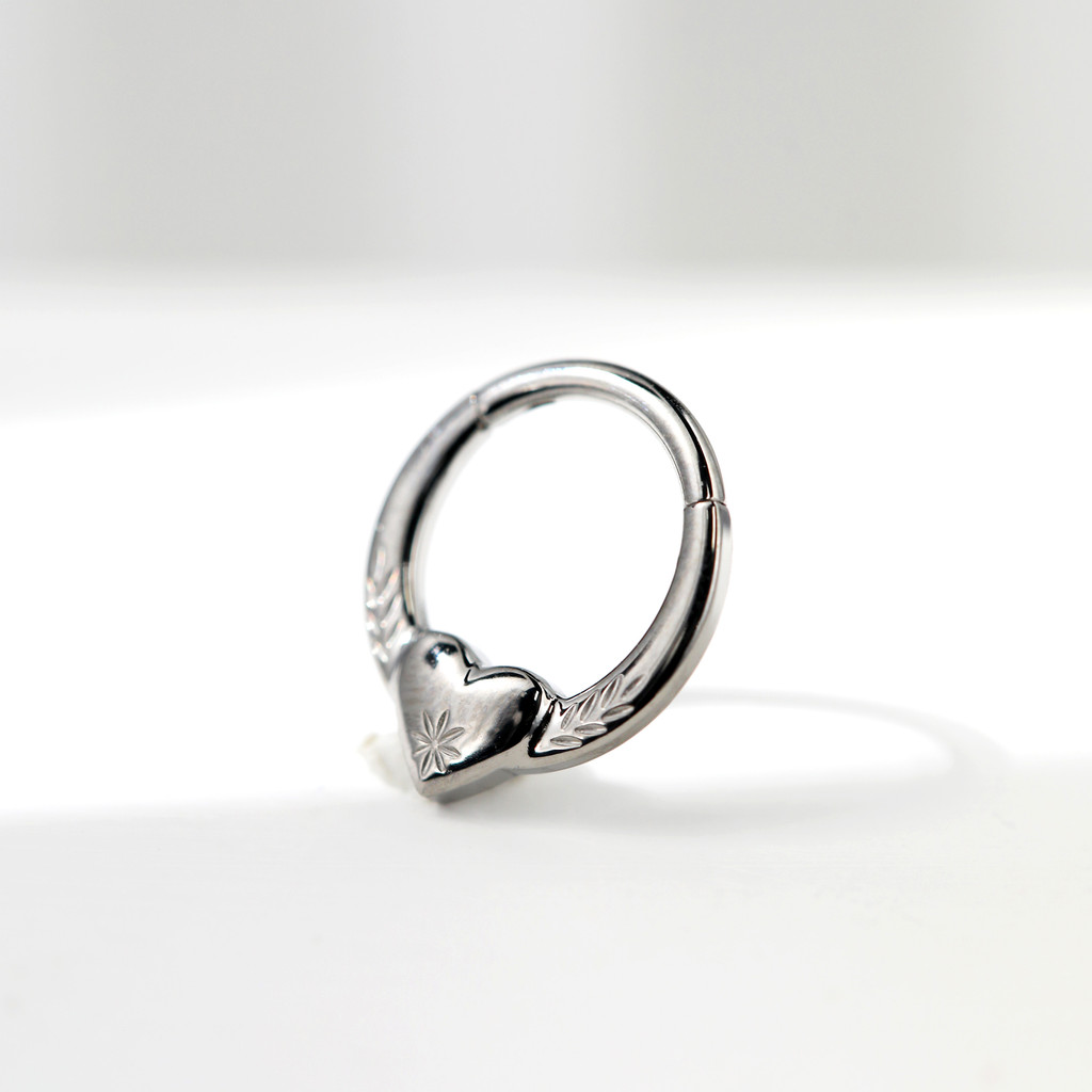 Piercing Titânio Argola Coração Articulado Com Detalhes Helix Septo Rook Conch Nariz Segmento