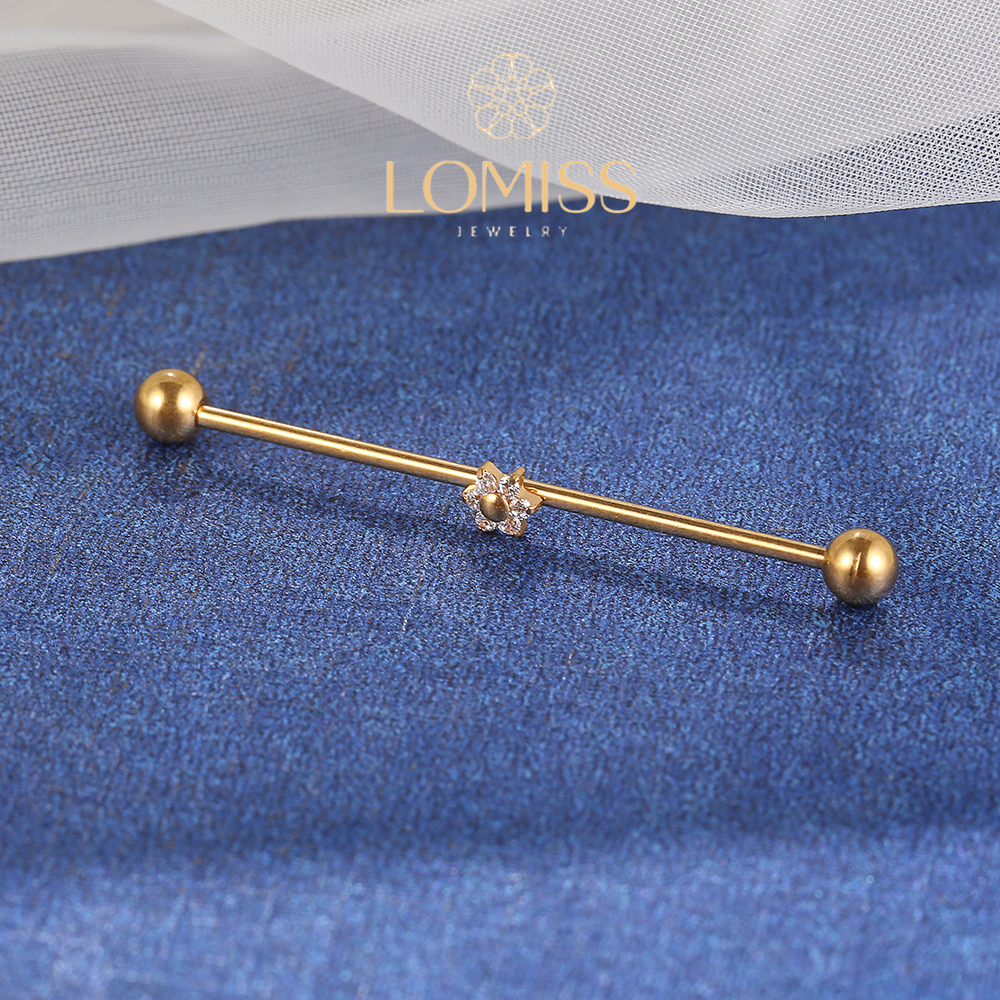 Piercing Transversal Aço Cirurgico Zircônia Flor 1,2x35x4/4