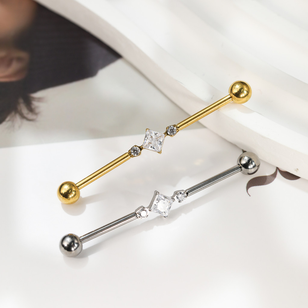 Piercing Transversal Titânio Losango Zircônia Cravejada