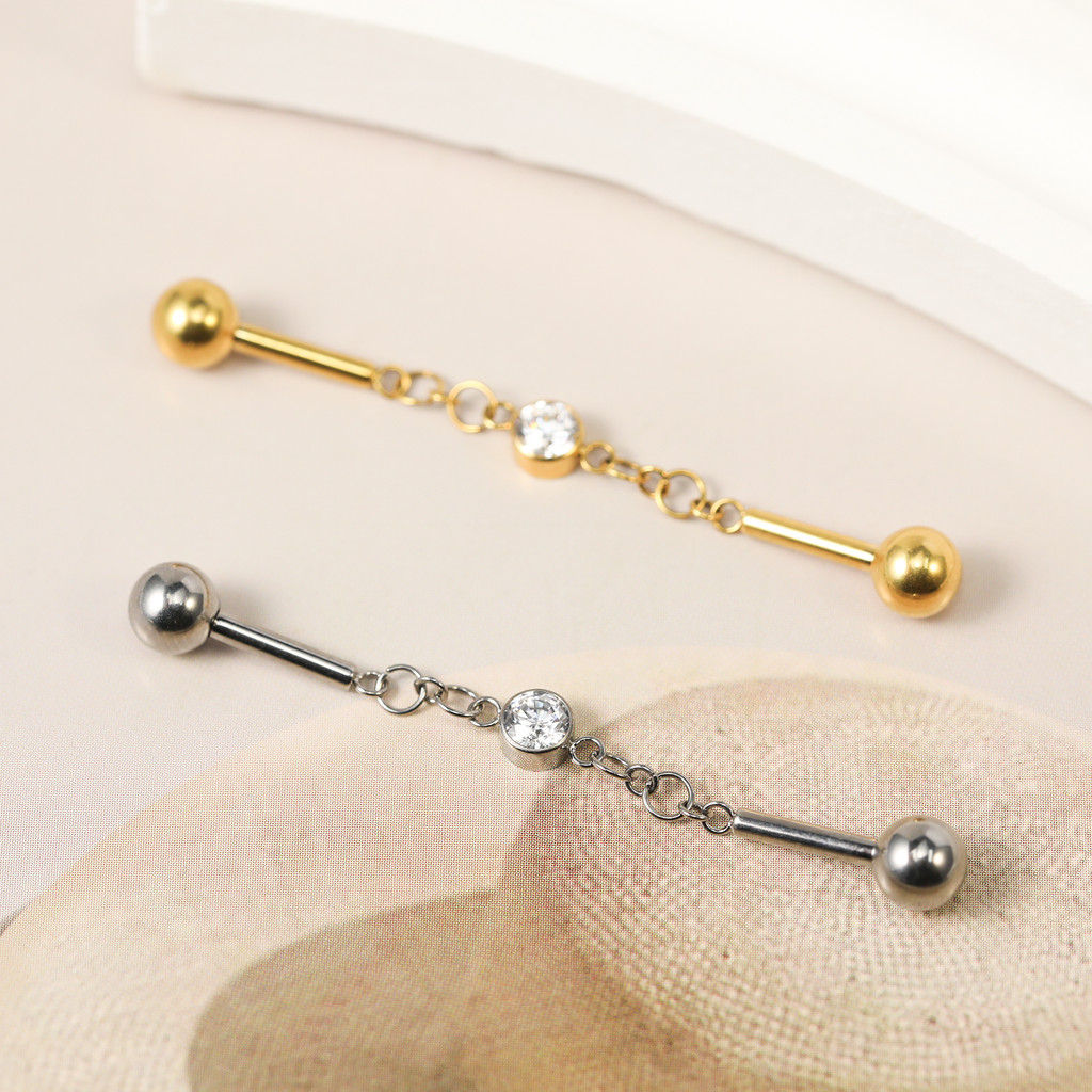 Piercing Transversal Titânio Ponto De Luz Zircônia Cravejada