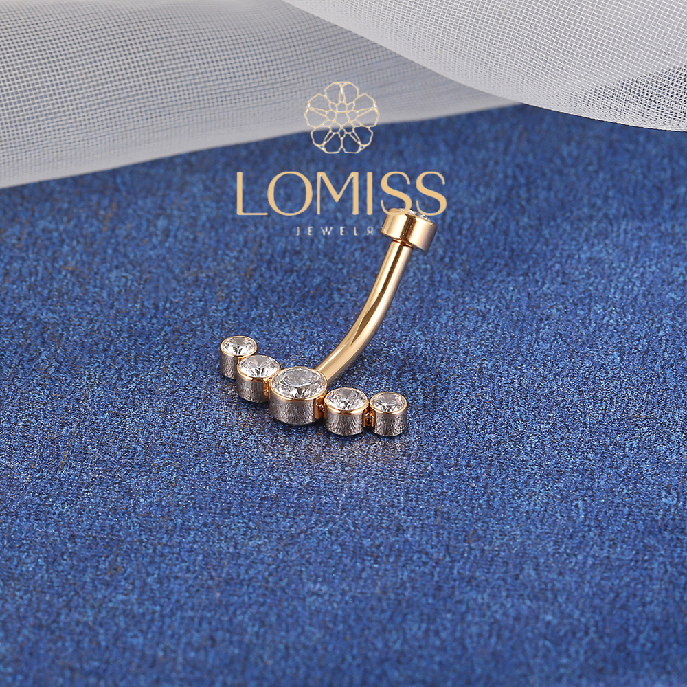 Piercing Umbigo Banana Aço Cirúrgico Pvd Cluster 6 Zircônias Cravejada