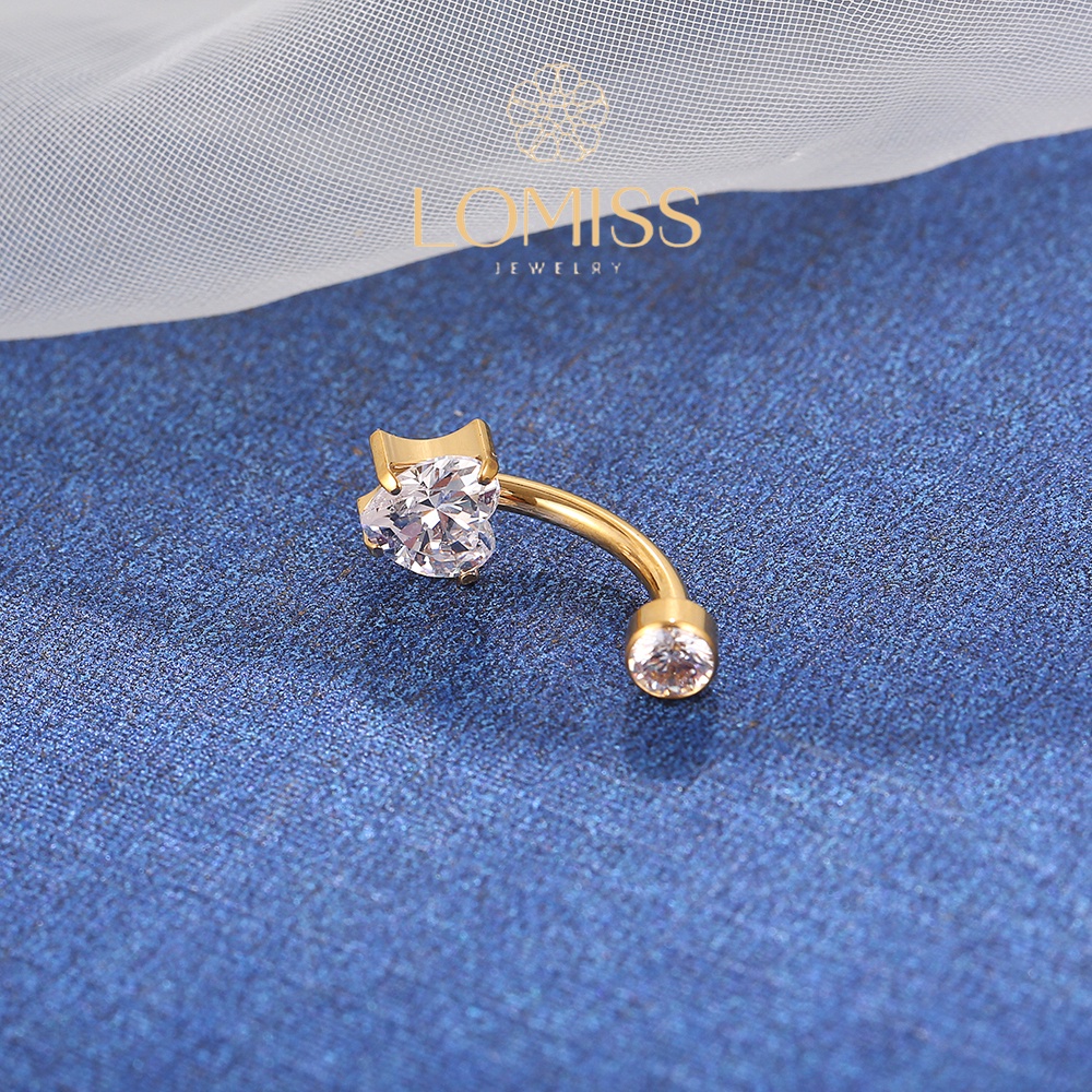 Piercing umbigo Banana de Titânio Coração Zircônia Lomiss semijoias
