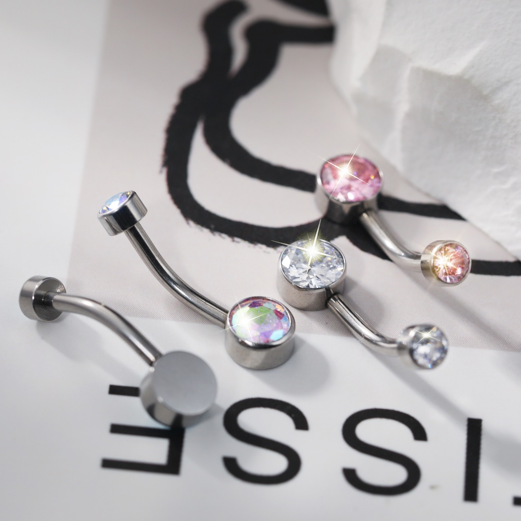 Piercing Umbigo Banana Titânio 2 Pedras Zircônia umbigo