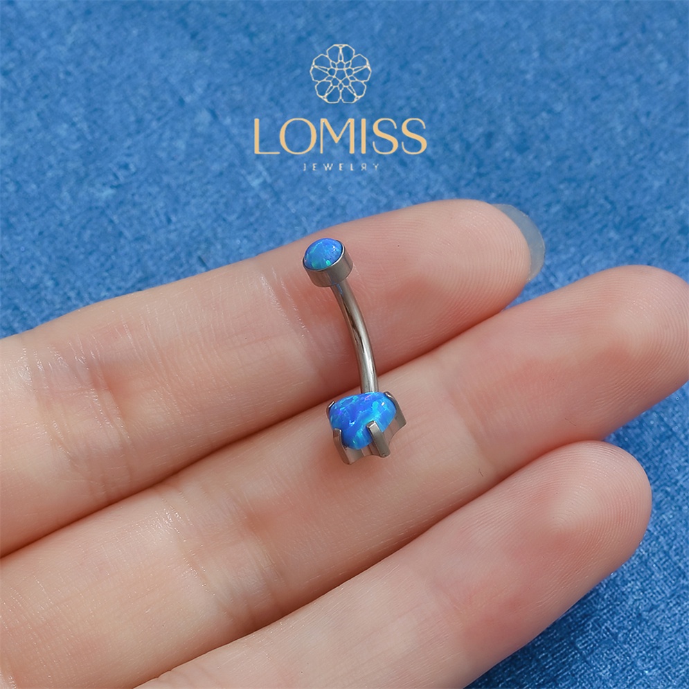 Piercing Umbigo Banana Titânio Opala Coração《Lomiss piercing》