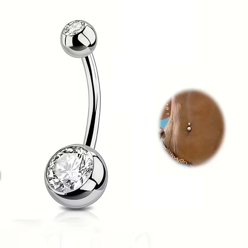 Piercing Umbigo Titânio 2 Zircônias Cristal 316l antialérgico