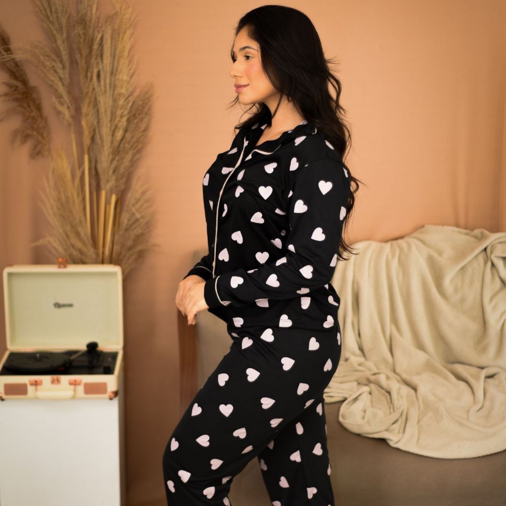 Deli Moda Noite A Deli Moda Noite é uma loja a pensada para que você desfrute ao máximo seu momento de descanso e repouso com estilo, conforto e bem estar! Se sinta bela em todos os momentos! FICHA TÉCNICA DO PRODUTO: - Material: 67% poliéster / 33% viscose - Tecido: PV-ANTI-PILLING - Tamanhos disponíveis: P, M ,G e GG - Medidas: P - Blusa: (Comprimento: 56cm / Busto: 90cm) Calça: Comprimento: 91cm / Cintura: 62cm) M - Blusa: (Comprimento: 58cm / Busto: 96cm) Calça: Comprimento: 95cm / Cintura: 64cm) G - Blusa: (Comprimento: 60cm / Busto: 100cm) Calça: Comprimento: 97cm / Cintura: 66cm) GG - Blusa: (Comprimento: 60cm / Busto: 104cm) Calça: Comprimento: 99cm / Cintura: 68cm) PERGUNTAS FREQUENTES: O que é malha PV-ANTI-PILLING? R: PV é a composição da malha e significa Poliéster e viscose, nas porcentagens de 67% poliéster e 33%viscose. ANTI-PILLING quer dizer que a malha passa por um tratamento que impede de fazer as famosas bolinhas. Qual o tempo de envio? R: Enviamos em até 24h após a compra (dias úteis) Pode lavar na máquina? R: Sim! Porém, para maior durabilidade nós recomendado: - Lavar a mão. - Não usar alvejante. - Não lavar a seco. - Não usar máquina secadora. Estamos a disposição para quaisquer outra dúvidas!!