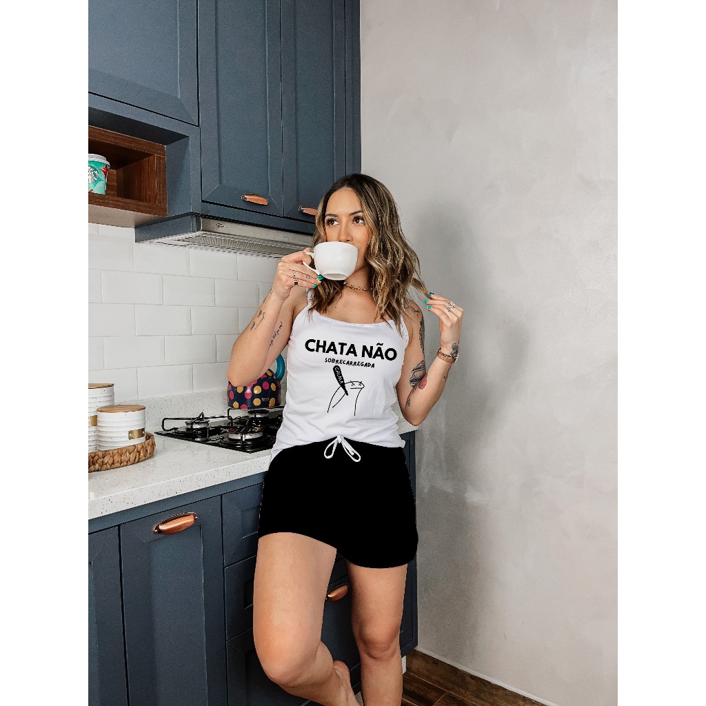 Pijama Baby Doll Feminino Branco Shorts Preto Chata Não Sobrecarregada
