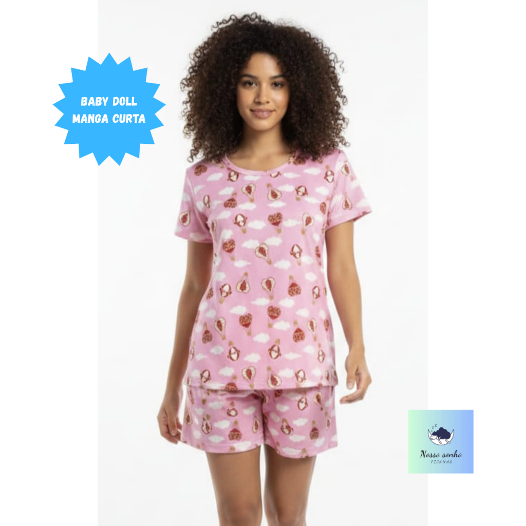 Pijama Baby Doll Manga curta Feminino em Malha Suede / Conjunto Feminino Short Doll Confortavel Feminino Pijamas