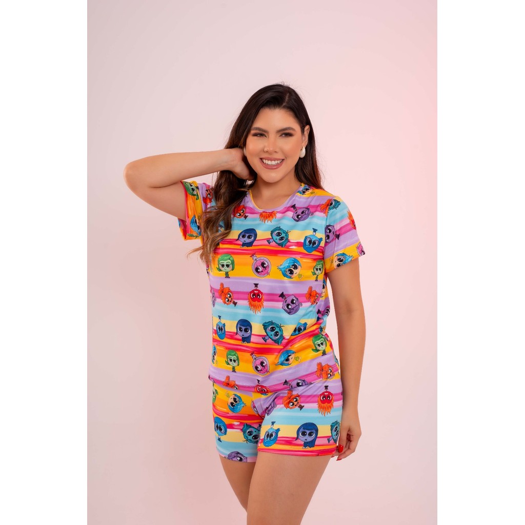 Pijama Baby Doll Manga Curta Personagens Divertidamente Colors Degrade