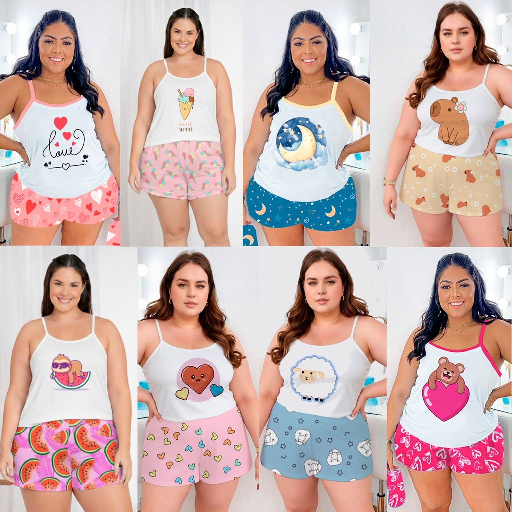 Pijama Baby Doll PLUS SIZE Blusinha Shorts Verão Suede Top Luxo