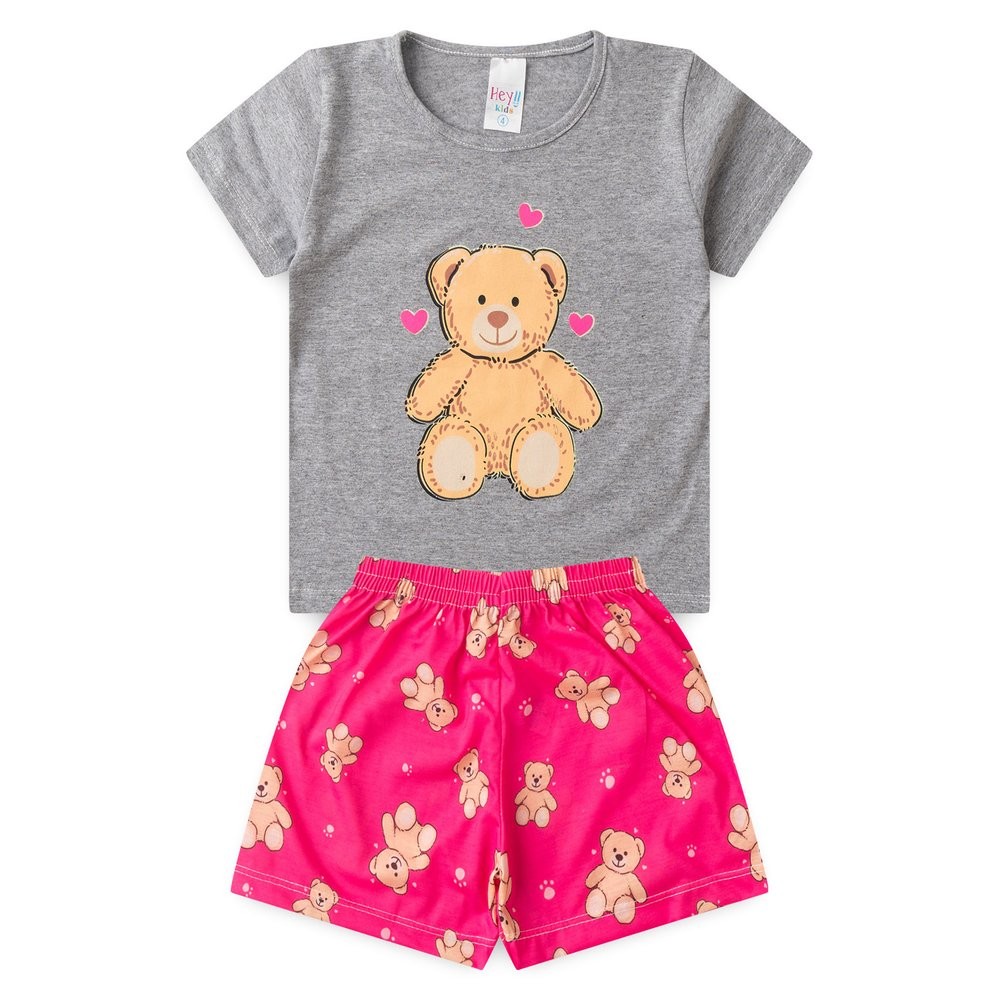 Pijama BRILHA NO ESCURO Infantil Menina Verão Ursinho - Hey Kids