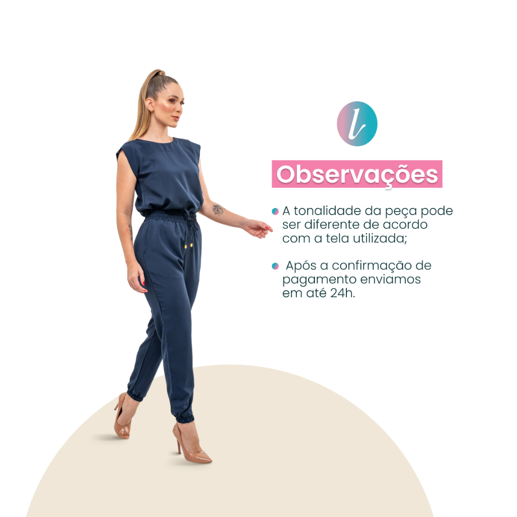 OBSERVAÇÕES - A tonalidade da peça pode ser diferente de acordo com a tela utilizada; - Após a confirmação de pagamento enviamos em até 5 dias úteis. Descrição Complementar O Conjunto Rebecca é confeccionado em tecido Oxfordine, trazendo um toque de sofisticação e durabilidade. A bata possui uma gola redonda, criando um visual leve e elegante. A calça jogger é equipada com um cós de elástico para maior conforto e praticidade, além de um cordão falso com ponteiras douradas que adiciona um detalhe sofisticado ao design. Este conjunto, sem bolsos, é ideal para quem busca uma combinação de estilo e funcionalidade no dia a dia. A qualidade do tecido Oxfordine assegura resistência e facilidade de manutenção, tornando o Conjunto Rebecca uma escolha versátil para diversas ocasiões. COMPOSIÇÃO Tecido: Oxfordine Composição: 100% Poliéster Gramatura: 115g/m2 INSTRUÇÕES DE LAVAGEM Temperatura máxima de lavagem 30°C / processo normal Não alvejar / não branquear Pode ser lavado em tambor Temperatura máxima da base do ferro 110°C Lavar a seco FICHA TÉCNICA Tipo: CONJ REBECCA (MARINHO) Marca: Larissa Jalecos Origem: Nacional