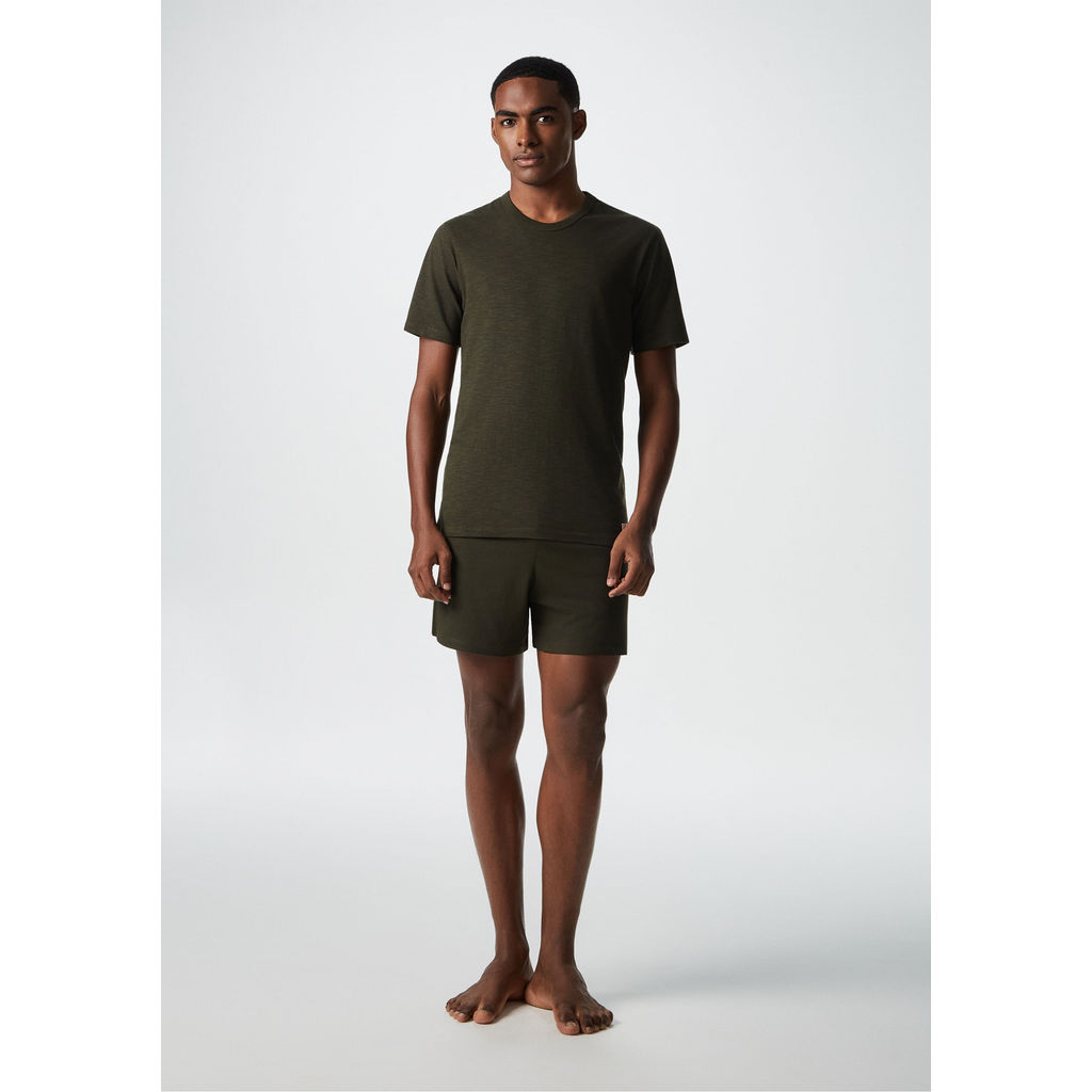 Pijama curto masculino em malha flamê, conforto e estilo para seus momentos de descanso. Pijama elaborado em malha, composto por camiseta com acabamento flamê e bermuda com elástico no cós.Detalhes da camiseta:Malha flamêModelagem regularManga curtaGola redondaEtiqueta na barraDetalhes da bermuda:Em malhaModelagem retaCós de elástico