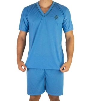 Pijama Curto Masculino Fechado Plus Size Roupa de Dormir Tamanho Especial Malha Fria Pijamas Homem Adulto Verão Manga