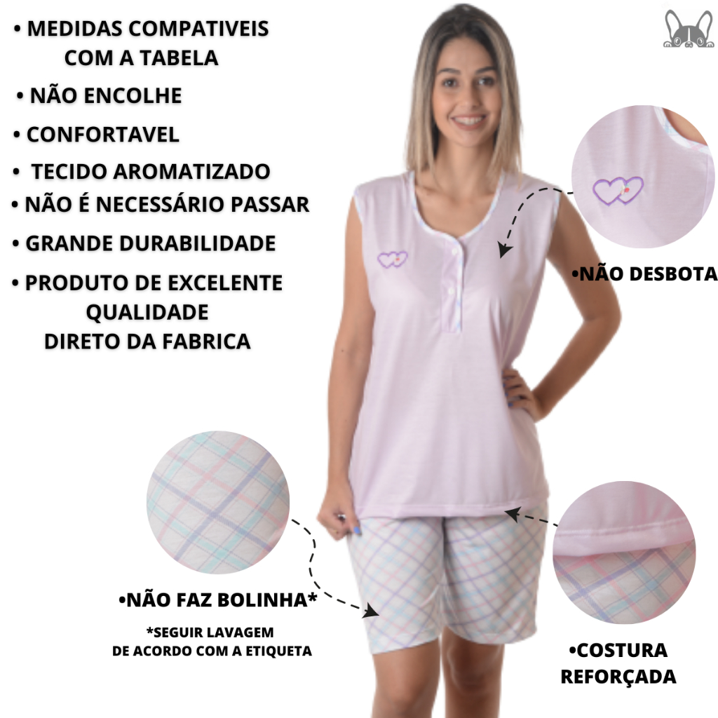 Ref. 7010 tamanho P M G GG Descrição: Pijama bermuda em malha. Blusa em malha lisa, regata, com abertura frontal e fechamento com botão, bordado, acabamento em viés estampado e bainha. Bermuda em malha estampada, elástico no cós e acabamento em bainha. - Não faz bolinha. - Não é necessário passar. - Ótimo acabamento. - Grande durabilidade. - Perfeito e confortável para o dia a dia, e para uma ótima noite de sono. - Produto de excelente qualidade direto da fábrica. Composição: Poliéster / Viscose. CERTIFIQUE-SE DO TAMANHO IDEAL, CONSULTANDO A TABELA ABAIXO. MANEQUIM P Busto (86 - 90) cm Comprimento da blusa (55 - 59) cm Quadril (102 - 106) cm Comprimento do short (39 - 43) cm M Busto (96 - 100) cm Comprimento da blusa (63 - 67) cm Quadril (102 - 106) cm Comprimento do short (41 - 45) cm G Busto (102 - 106) cm Comprimento da blusa (64 - 68) cm Quadril (112 - 116) cm Comprimento do short (46 - 50) cm GG Busto (108 - 112) cm Comprimento da blusa (70 - 74) cm Quadril (120 - 124) cm Comprimento do short (46 - 50) cm TIRE TODAS AS SUAS DÚVIDAS PELO CHAT ANTES DE FINALIZAR A COMPRA. SERÁ UM PRAZER ATENDÊ-LOS (A).