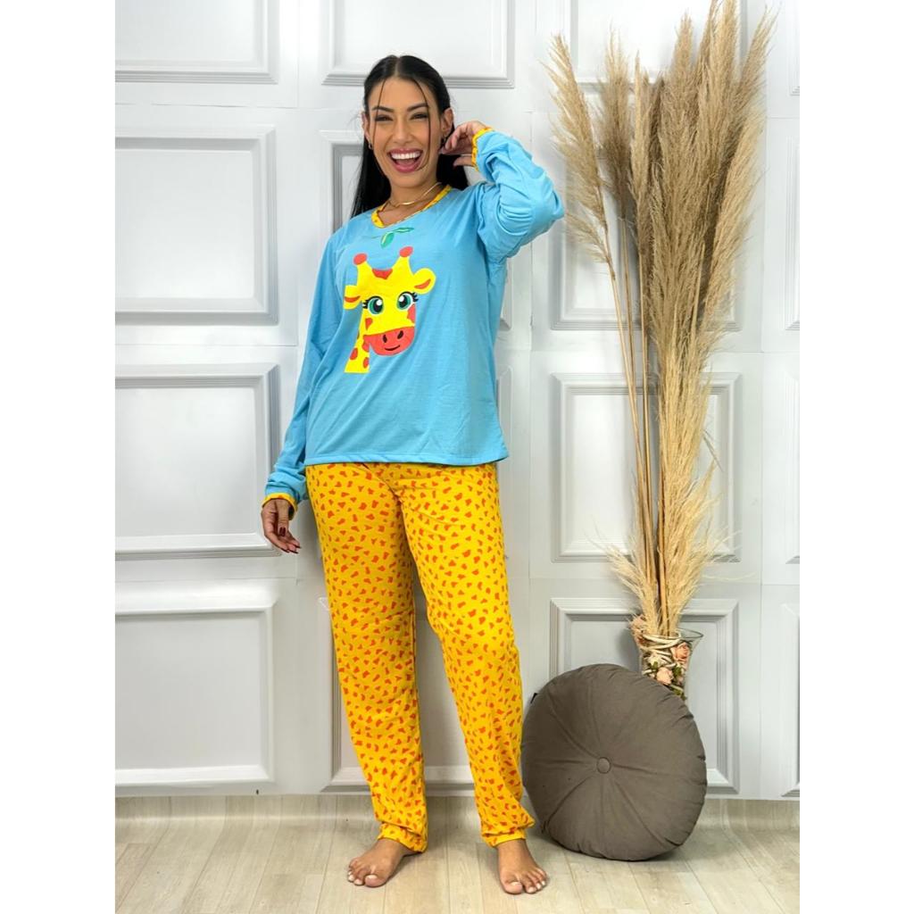Pijama FB Premium Manga Longa Girafinha - Conforto e Estilo para Noites de Inverno Personagens Promoção