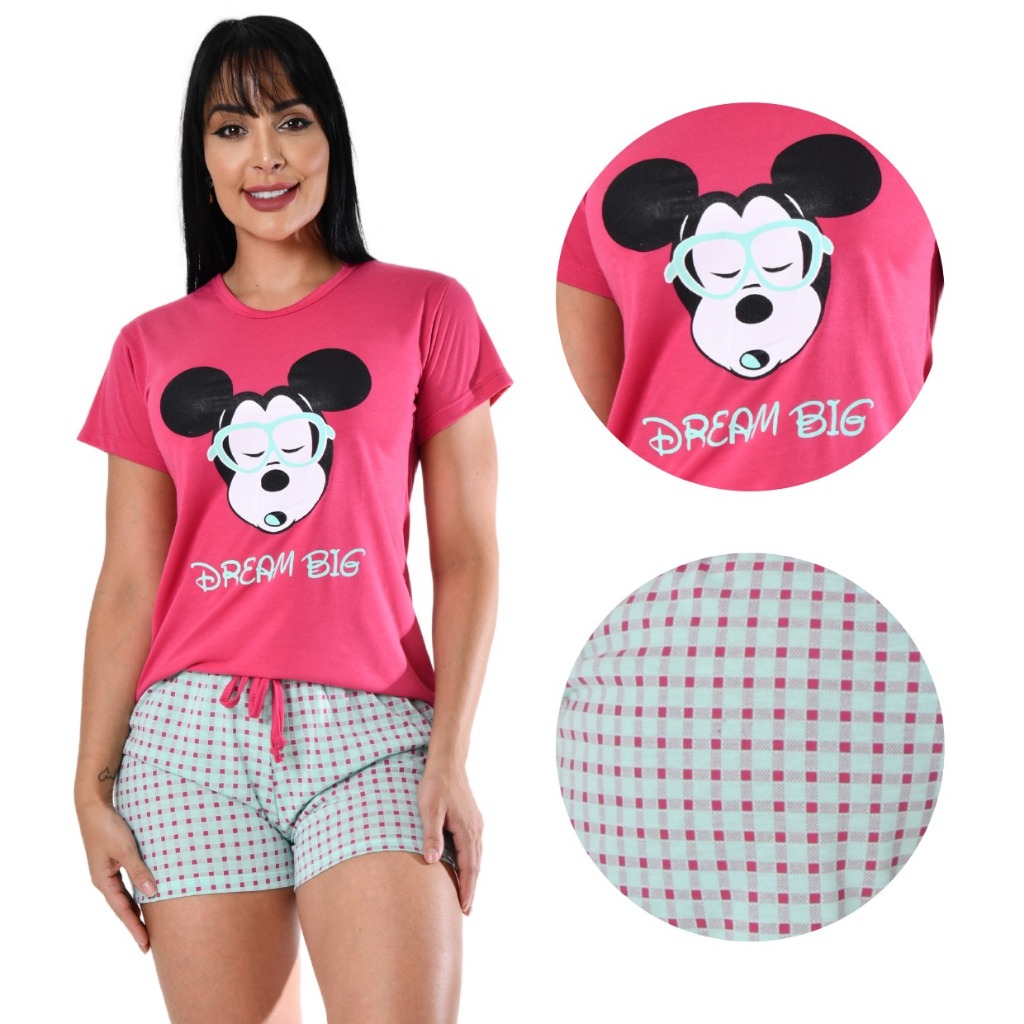 Pijama Feminino Adulto Baby Doll & Short Doll Estampado Manga Curta