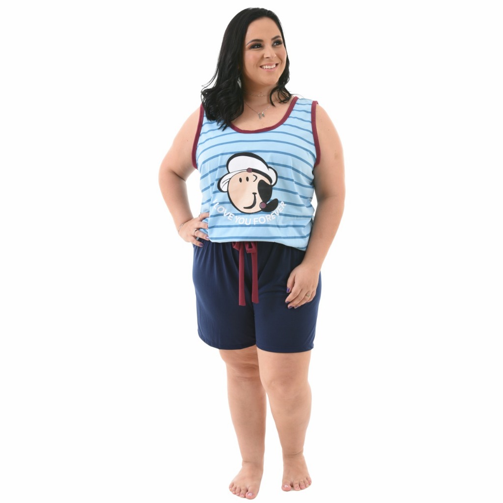 Pijama Feminino Adulto Plus Size Baby Doll Camiseta Regata E Short Doll
