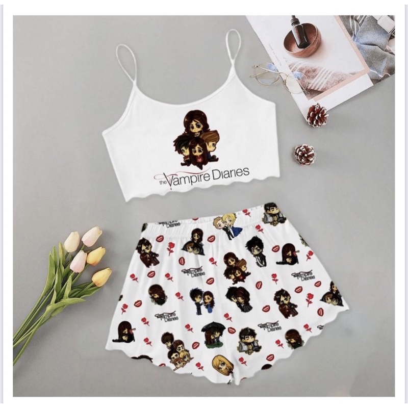Pijama feminino adulto serie diarios de um vampiro roupa de dormir moda