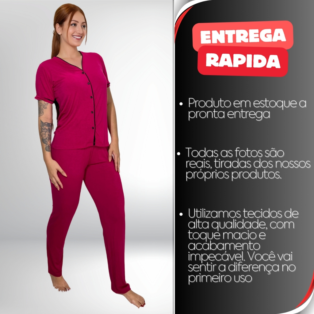 Pijama estilo americano super confortável manga curta com calça longa tecido visco lacyra Pijama com Manga Curta com calça tecido viscose elastano super Confortável não pega bolinha e não precisa passar o ferro antialergicoPijama 100% Original vai com nota fiscal e garantia. composição 96% Viscose 4% Elastano Cor disponivel preto e cinza igual o modelo das fotoesse modelo esta disponivel nos tamanhos P . M . G . GG