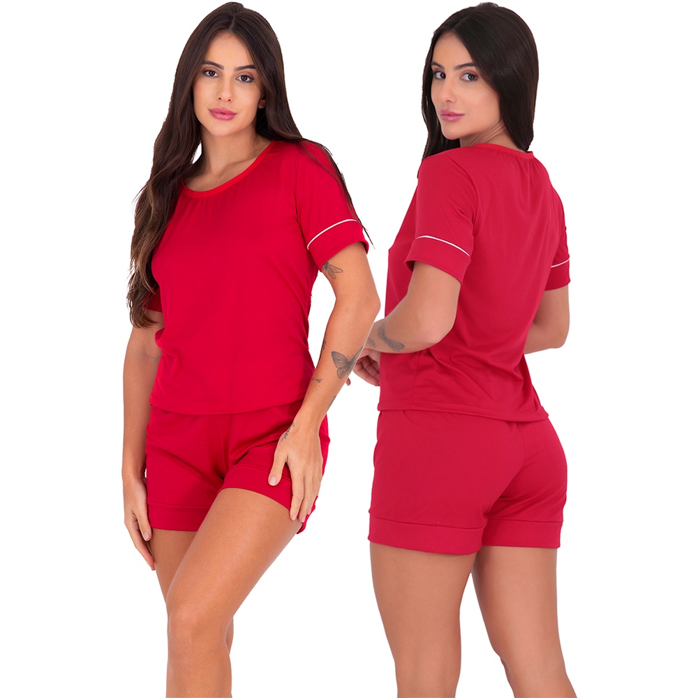 Pijama Feminino Estilo Manga Curta Suede