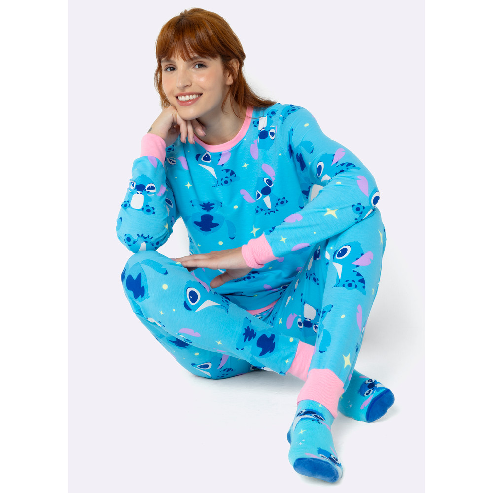 Pijama Feminino Inverno Blusa Manga Longa Ultra Visco e Calça Stitch 2 Peças Pijama Disney