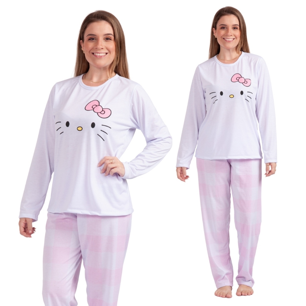Pijama Feminino Longo Estampado Inverno Manga Longa Calça Comprida