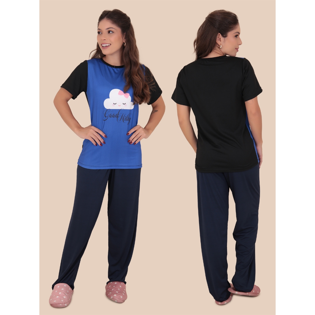 Pijama Feminino Manga Curta Calça Comprida Virginia Moda Feminina