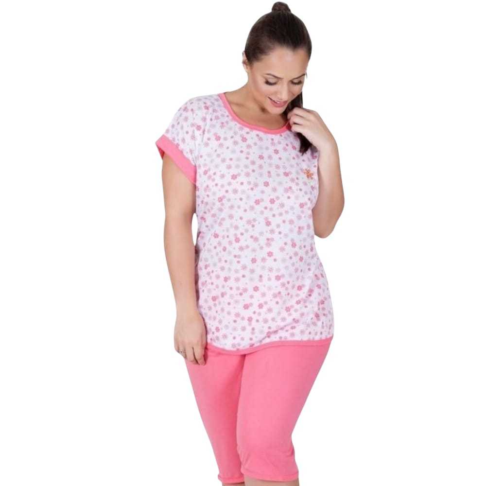 Pijama Feminino Pescador Senhora Manga Curta Bermuda Conforto