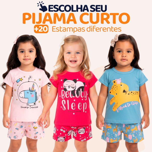 Pijama Infantil Feminino Verão – Manga Curta + Bermuda | 100% Poliéster** Conforto e leveza para noites tranquilas e divertidas O **pijama infantil Feminino de verão** foi desenvolvido para oferecer conforto e liberdade em noites quentes. Com **tecido leve e toque suave**, é ideal para o dia a dia, proporcionando frescor e bem-estar para o seu pequeno. Neste anúncio, o comprador pode **escolher entre mais de 10 modelos diferentes**, com estampas alegres e divertidas. Monte o kit ideal de acordo com o gosto e estilo da criança. --- Detalhes do Produto - Camiseta de **manga curta**, com gola reforçada - Bermuda com **elástico confortável na cintura** - Confeccionado em **100% poliéster** – leve, macio e de secagem rápida - Estampas exclusivas com temas infantis - Ideal para o verão e dias de calor --- Tabela de Medidas Camiseta* Tam 1 – Busto 26 cm | Comprimento 35 cm Tam 2 – Busto 27 cm | Comprimento 37 cm Tam 3 – Busto 28 cm | Comprimento 38 cm Tam 4 – Busto 32 cm | Comprimento 45 cm Tam 6 – Busto 35 cm | Comprimento 46 cm Tam 8 – Busto 36 cm | Comprimento 49 cm Tam 10 – Busto 36 cm | Comprimento 52 cm Bermuda Tam 1 – Cintura 20 cm | Comprimento 26 cm Tam 2 – Cintura 21 cm | Comprimento 27 cm Tam 3 – Cintura 19 cm | Comprimento 27 cm Tam 4 – Cintura 24 cm | Comprimento 33 cm Tam 6 – Cintura 25 cm | Comprimento 34 cm Tam 8 – Cintura 24 cm | Comprimento 36 cm Tam 10 – Cintura 25 cm | Comprimento 37 cm *Pode haver pequena variação (±2 cm) devido ao processo de confecção.* --- Benefícios do Produto - Tecido leve e respirável - Conforto e liberdade para brincar e dormir - Secagem rápida e fácil manutenção - Estampas variadas com temas divertidos - Perfeito para o verão e climas quentes --- Dica Adicione mais de um modelo ao carrinho e **aproveite o mesmo frete** para montar um kit completo e variado de pijamas para o sua Filha. --- Perguntas Frequentes 1. Posso escolher o modelo? Sim. Basta selecionar o modelo desejado no momento da compra. 2. O tecido é quente? Não. O poliéster é leve e fresco, ideal para noites de verão. 3. A bermuda tem elástico? Sim. Todas as bermudas possuem elástico confortável e ajustável na cintura. 4. As estampas desbotam com o tempo? Não. O tecido é resistente e mantém as cores vivas mesmo após diversas lavagens.