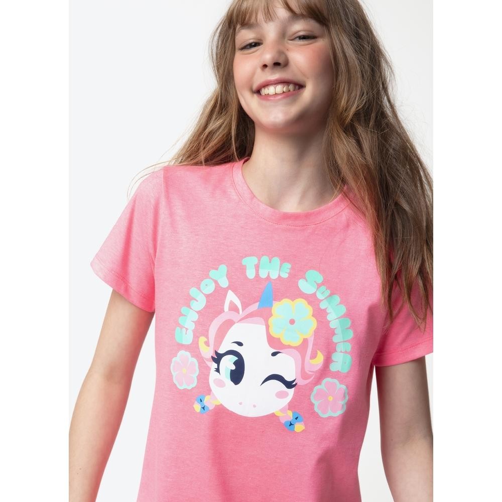 Pijama Infantil Feminino Verão Camiseta Manga Curta e Shorts Algodão 2 Peças Unicórnio Aloha Puket