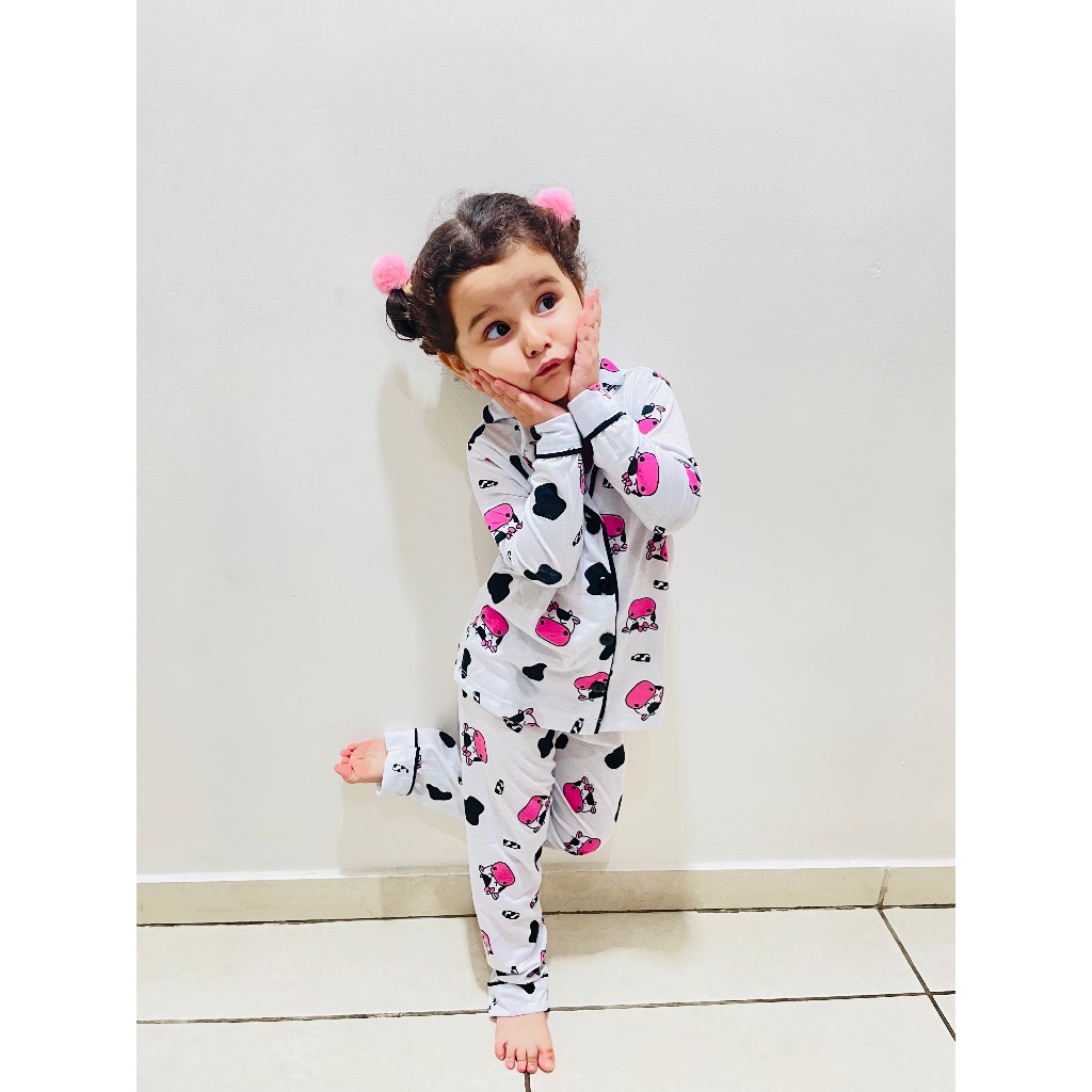 Pijama infantil Inverno Feminino Americano de Criança com Botões Calça e Blusa de Manga Comprida