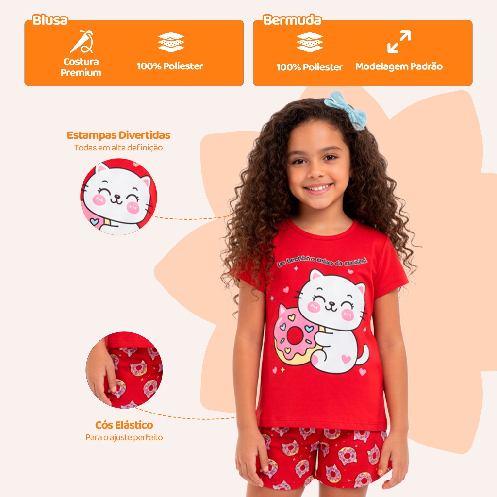 | Pijama Infantil Menina Manga Curta com Estampas Fofas e Conforto Ro... este produto | R$ 27,90 | 44% | 4.7/5 | 3 |