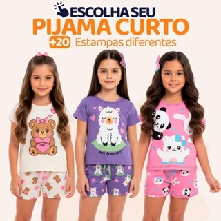 Pijama Infantil Menina Manga Curta com Estampas Fofas e Conforto Roupa de dormir Infantil Feminino Verão Calor. L06