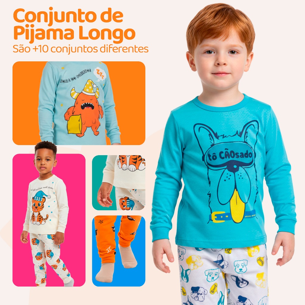 | Kit Sortido 4 Peças Pijama Infantil Menino Manga Comprida Tamanho 1... | R$ 54,99 | 35% | 4.8/5 | 1.3 mil |