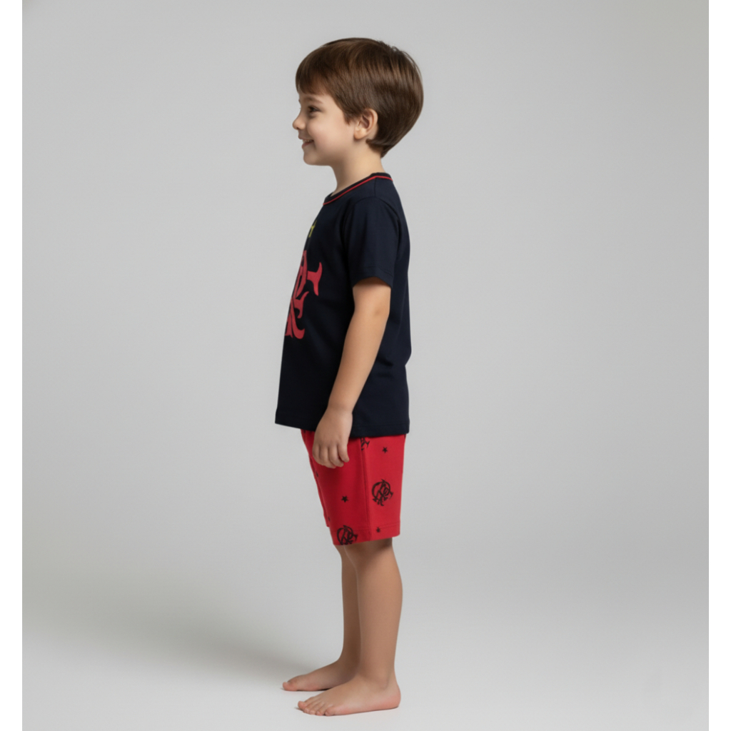 ATENÇÃO: Aconselhamos pedir um tamanho maior do que o habitual, por ser um pijama e trazer mais conforto. Cada pijama é cuidadosamente estampado com o emblema icônico do seu time do coração, expressando seu orgulho de uma forma confortável. Confeccionado em malha de alta qualidade, o pijama proporciona uma sensação suave e arejada, perfeita para as noites mais quentes da estação. O tecido leve e confortável garante um sono tranquilo, mantendo você fresco durante toda a noite. CONTÉM: 1 Camisa e 1 Short (Conjunto Pijama Infantil) No coração do polo de moda íntima, oferecemos uma coleção de peças modernas, elegantes e confortáveis que vão além do simples vestir. Nós da DNT temos o compromisso de realçar sua beleza interior com cada detalhe, proporcionando o equilíbrio perfeito entre elegância e conforto!