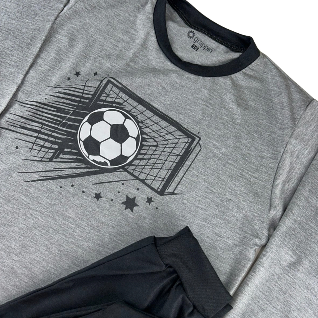Pijama Juvenil Longo Masculino Grappin Malha PV com Punho Leve Futebol Gamer