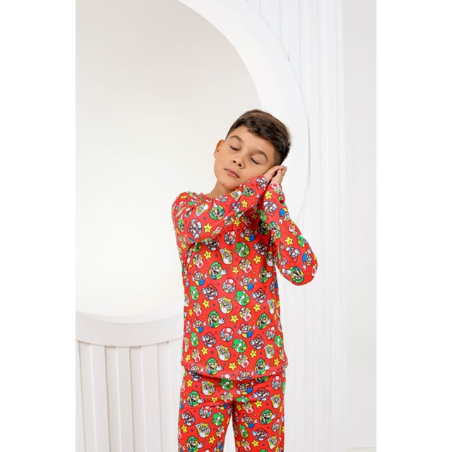 Pijama Kids Calça Manga Longa Personagens Mario Red