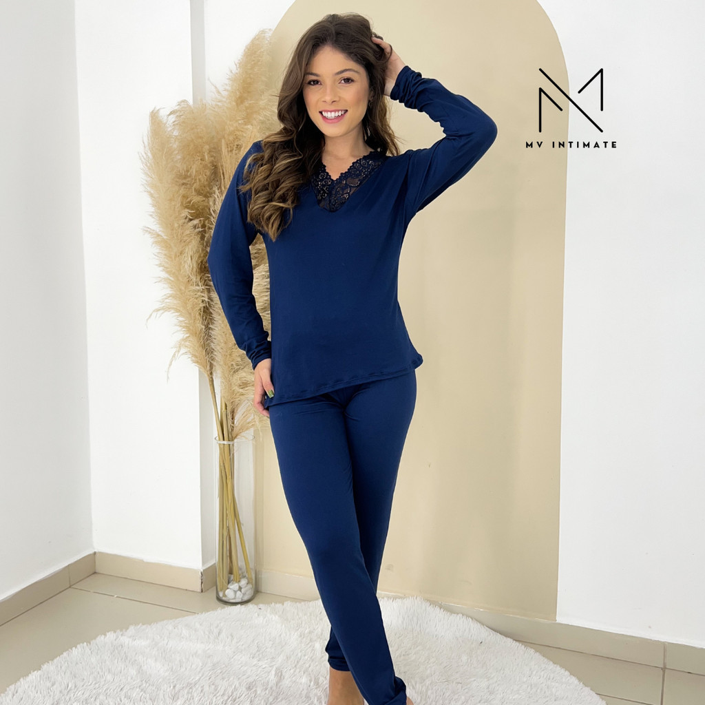 PIJAMA LONGO FEMININO LISO EM SUEDE GOLA V EM RENDA Pijama super confortável, fabricada em tecido suede. O modelo é lindo, leve e delicado. A blusa tem um detalhe em gola V em Renda que deixa a peça romântica e delicada. O conjunto é lindo e confortável, veste muito bem e foi feito para deixar o seu visual cheio de sensualidade e estilo. 1. Conforto e Aconchego: O suede é um tecido macio e agradável ao toque, proporcionando uma sensação de conforto e aconchego ao vestir o pijama. Durante as estações mais frias, é importante se manter aquecido, e o suede é um material que ajuda nesse aspecto. 2. Isolamento Térmico: O suede tem propriedades de isolamento térmico, o que significa que ele ajuda a reter o calor do corpo, mantendo-o aquecido mesmo em temperaturas mais baixas. Isso é particularmente benéfico durante as noites frias de outono e inverno, garantindo uma boa noite de sono. 3. Estilo e Elegância: O fato de ser estampado adiciona um toque de estilo e elegância ao pijama. Mesmo sendo uma peça para dormir, muitas pessoas apreciam se sentir bem vestidas mesmo em casa. A manga comprida também traz um aspecto mais sofisticado ao pijama. 4. Durabilidade e Qualidade: O suede é conhecido por sua durabilidade e qualidade. Ao investir em um pijama de suede, você pode esperar que ele dure por várias estações, proporcionando conforto e estilo por um longo período de tempo. 5. Bem-Estar: Dormir bem é essencial para o bem-estar físico e mental, e um pijama confortável pode contribuir significativamente para isso. Ter um pijama de suede estampado com manga comprida pode aumentar o prazer de se preparar para dormir, criando uma rotina relaxante e reconfortante antes de se deitar.rnInstruções de Lavagem: Lavar a mão com temperatura máxima de 40°C; Não utilizar alvejantes; Não secar em máquina; Não utilizar ferro de passar roupas; Não lavar a seco; Lave sempre pelo lado avesso para manter a peça com aparência de nova por maior tempo; Não deixar a peça de molho. Composição: 96% Poliéster e 4% Elastano TAMANHOS:M / G / GG M = 36 - 38 / Busto: 91-94/ Cintura: 74-80/ Quadril = 99-103 G = 40 - 42/ Busto: 95-100/ Cintura: 81-87/ Quadril = 104-108 GG =44 - 46 / Busto: 101-104/ Cintura: 88-94 / Quadril = 109-113