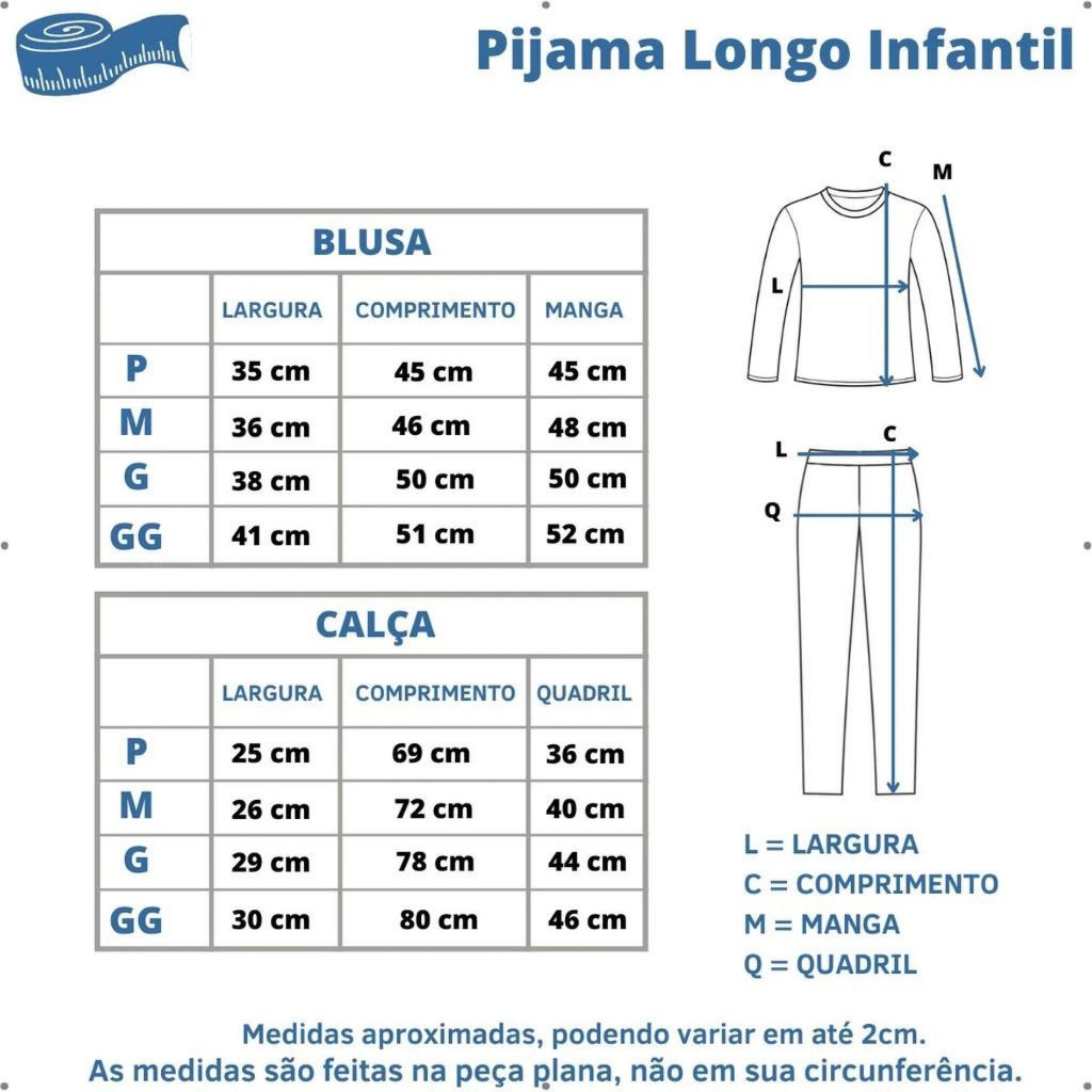 A hora do sono é um momento especial e esse Pijama Longo é a opção correta para dormir com estilo e conforto, pois é confeccionado em Malha PP, material super quentinho e leve, esse produto é ideal para tornar sua noite muito mais animada e aconchegante, além de ser ótimos para usar em casa no dia dia. TABELA DE MEDIDA: P - 4 a 6 ANOS M - 6 a 8 ANOS G - 8 a 10 ANOS GG - 10 a 12 ANOS COMPOSIÇÃO: -> 100% POLIÉSTER. > Para garantir melhor durabilidade de seu produto: - Deve ser lavado apenas à mão e com sabão neutro. - Prefira a secagem à sombra. - Dispensa o uso de amaciante e ferro de passar. - Garantia da Qualidade. - Custo Benefício. *Tecido sintético com alta durabilidade. *Toque macio, este pijama garante seu conforto na hora do sono *Não é necessário passar e não cria bolinhas.