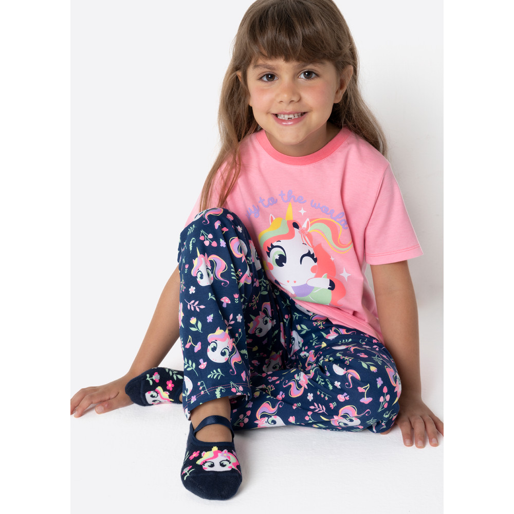 Pijama Manga Curta Algodão Menina Unicórnio Encantado - Puket