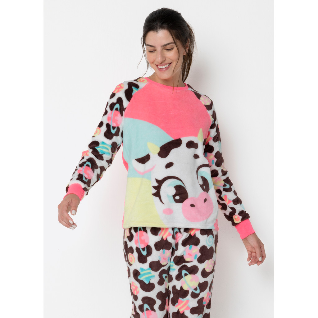 Pijama em coral fleece com estampa de vaquinha Puket