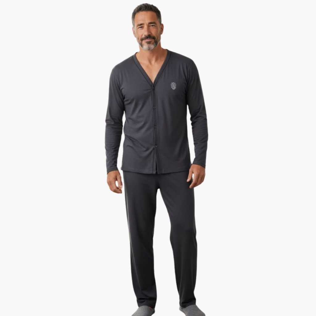 Pijama Masculino Aberto na Frente Manga Longa e Calça Pós Cirúrgico Idoso