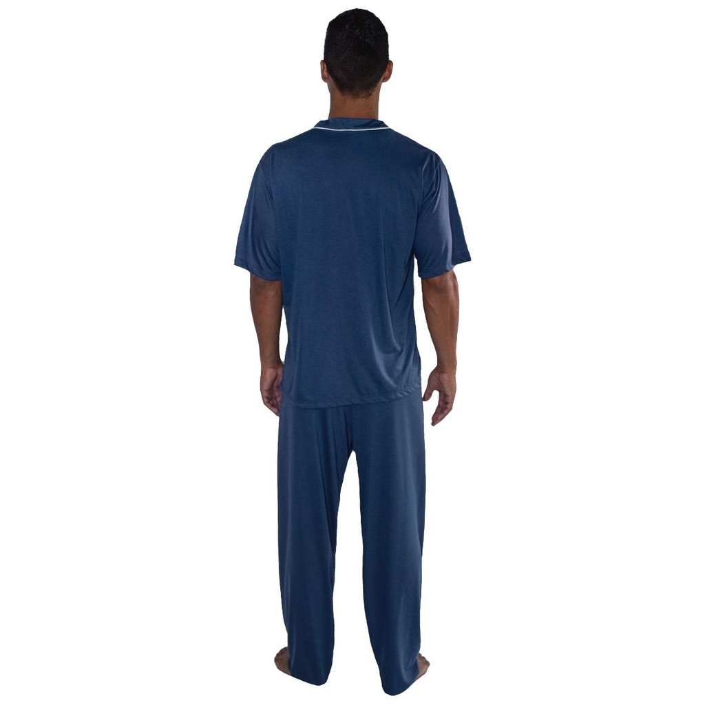 Pijama Meia Manga Aberto Com Calça Comprida Masculino Adulto Plus Size - 197A • Malha de boa qualidade; • Blusa de manga curta e aberta na frente com botões; • Calça lisa igual a blusa. Composição: 67% poliéster e 33% viscose