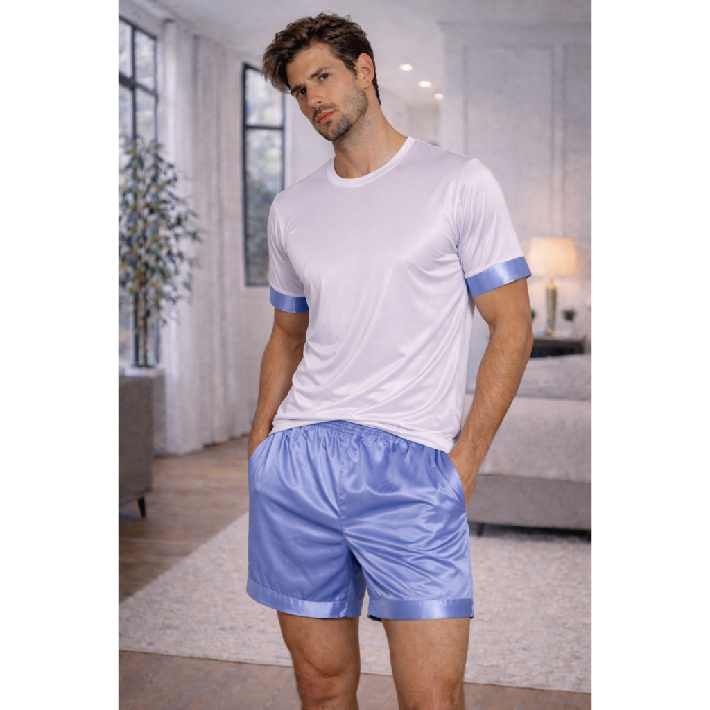 Pijama Masculino Cetim Luxo Conjunto Short Seda e Camiseta Premium