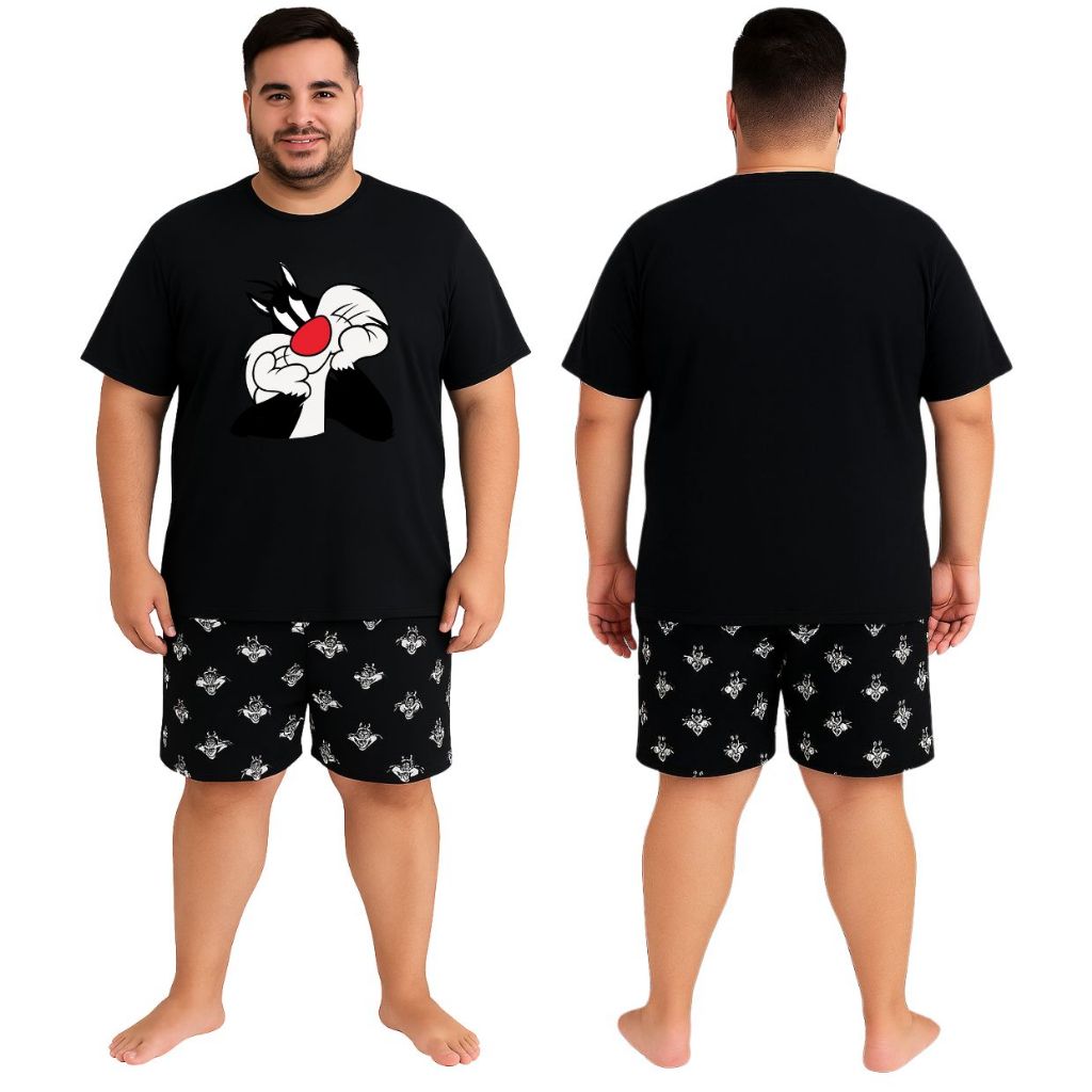 Pijama Masculino Plus Size Estampado Verão Confortável Tamanho Grande – Shorts e Camiseta