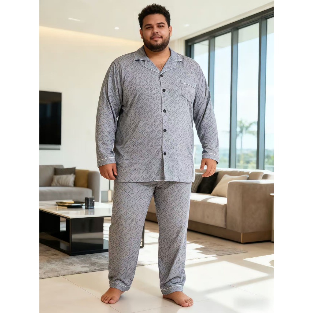 Pijama Masculino Plus Size Manga Longa Tamanho Grande