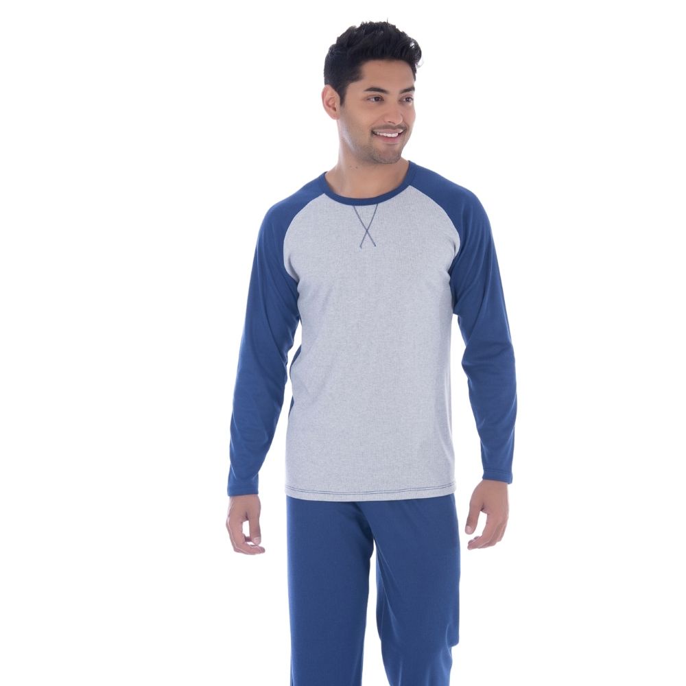 Pijama Victory Plus Size Masculino De Inverno Ref: 22144 **Nao Inclui Acessorios** Pijama de Inverno mangas e calcas longas, para quem gosta de dormir com um pijama confortavel, mas nao abre mao da qualidade e de estar sempre bem vestido. - Ideal para os momentos de descanso em casa. - Manga longa. - Pijama com tecido Canelado. - Calca com elastico no cos. - Lindo, moderno e estiloso.0 Composicao: 50% Algodao e 50% poliester