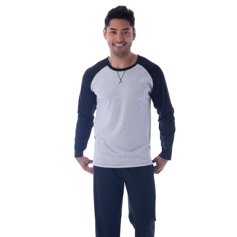 Pijama Victory Masculino De Inverno Ref: 22139 **Nao Inclui Acessorios** Pijama de Inverno mangas e calcas longas, para quem gosta de dormir com um pijama confortavel, mas nao abre mao da qualidade e de estar sempre bem vestido. - Ideal para os momentos de descanso em casa. - Manga longa. - Pijama com tecido Canelado. - Calca com elastico no cos. - Lindo, moderno e estiloso.0 Composicao: 50% Algodao e 50% poliester