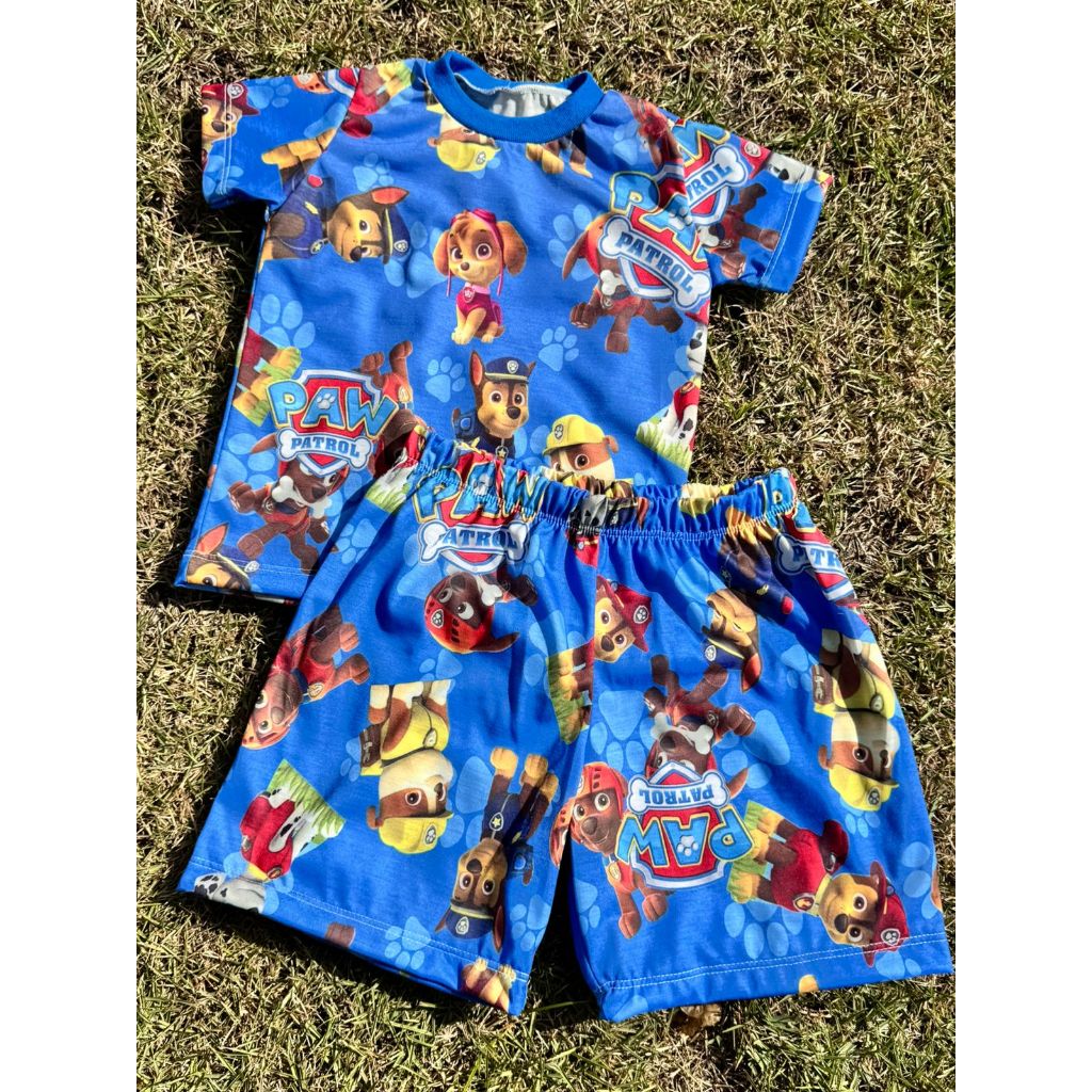 Pijama Menino Infantil PATRULHA CANINA AZUL Conjunto Manga Curta Personagem Meia Manga Dormir